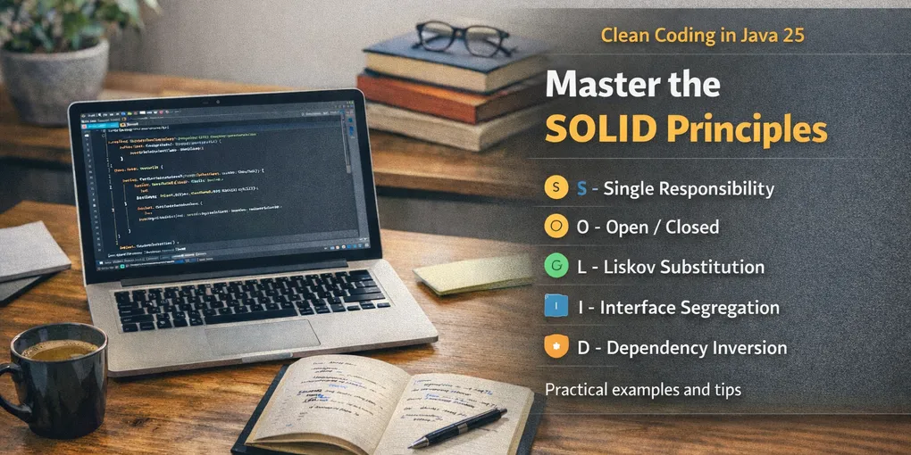 This is the second installment of the series. We focus on SOLID, five principles that serve as a compass for writing clean, easy-to-change object-oriented code. We’ll go through each principle with up-to-date examples in Java 25 and practical guidelines for applying them without over-engineering.
